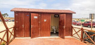 Den är lite speciell denna camping. Den har inga g.k. avlopp så man får tömma i bulk där det finns vatten så man kan skölja. Servicehuset är stängt för toa och dusch, men man kan gå och diska. Man har ingen el. Anläggningen har dock massor av solpaneler som sköter belysning och annat för själva campingen. För vår del är det alldeles utmärkt då vi producerar vår egen el. Formellt får man bara ta 25 liter vatten per plats och dag, men det är ingen som helst koll på. Just nu är det många husvagnar som bygger förtält för sommaren (vilket de inte borde få då man max får boka en vecka med en veckas förlängning) och de fyller stora vattentunnor med hundratals liter vatten. Ska kolla möjligheten lite senare i receptionen.
